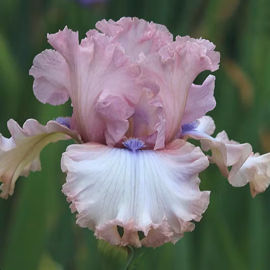Amerikansk skönhet som vunnit ett flertal priser. Vacker form och rosa nyanser. Ovanligt skägg som är till hälften mandarinfärgat och till hälften violett.