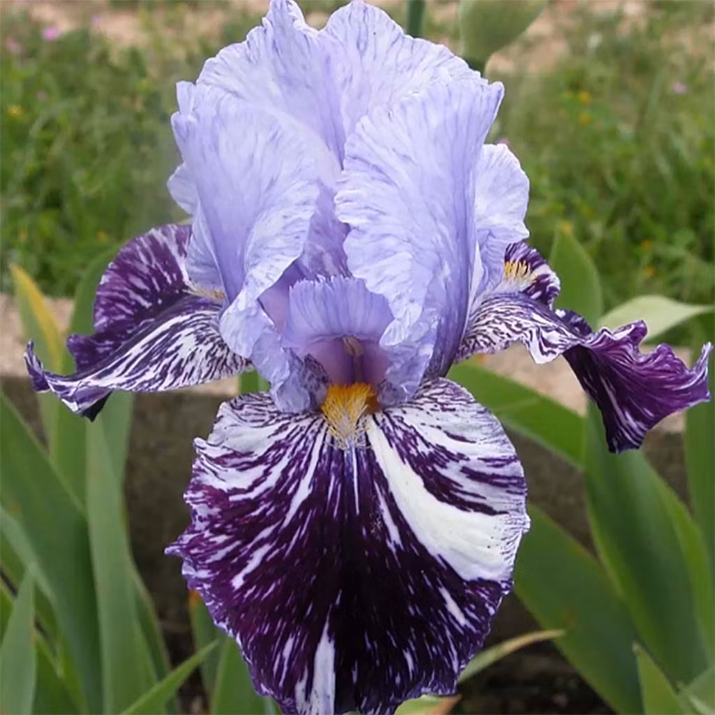 Blåregnsblått och royalblått tillsammans med vita stänk gör denna iris till ett riktigt samlarobjekt. Kom lagom till millenieskiftet och har älskats sedan dess.